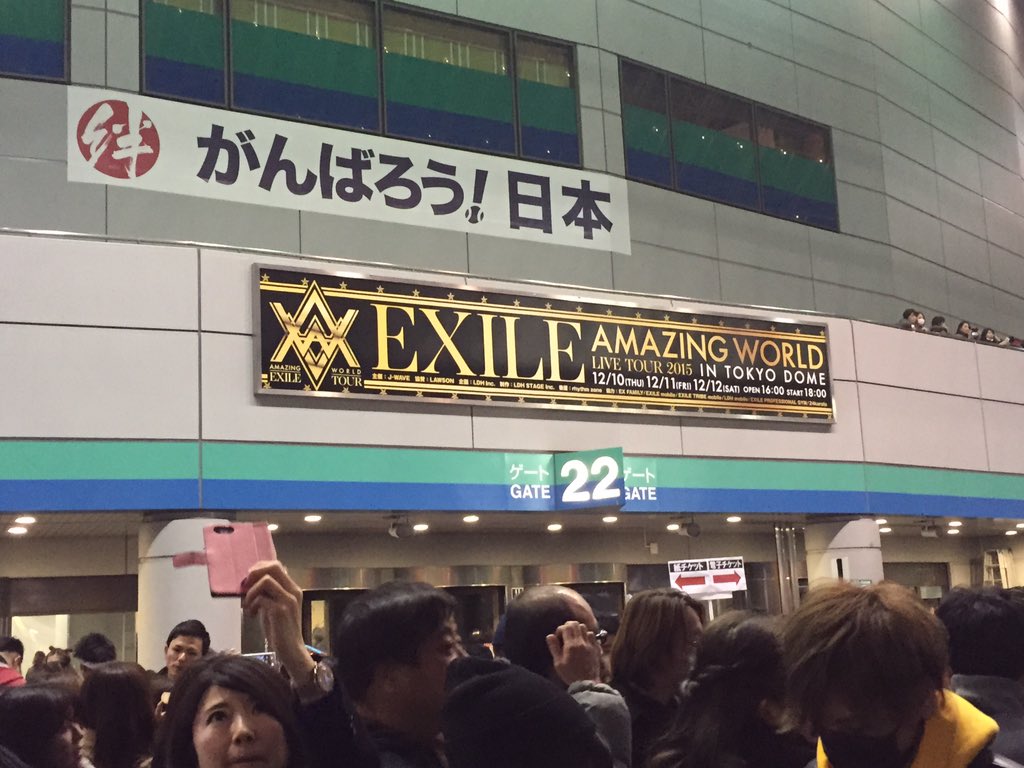 あつしおかえり!12/10、EXILEの第四章単独ツアー2015「AMAZING WORLD」in東京ドームが開催。セットリストとライブ参加レポをまとめます。#チケット#グッズ列#拡散#画像#臣#三代目#AW#セトリ#12月10日#AW12/10#交換#座席#AV#直人#フリスビー